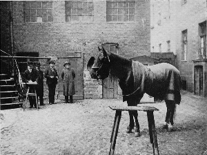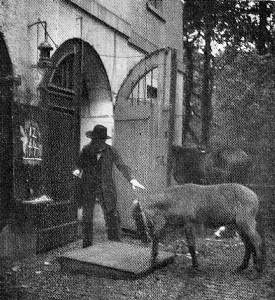 Prof. Dr. H. E. Ziegler mit "Hänschen", in Abwesenheit Krall's Versuche anstellend |