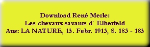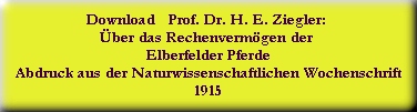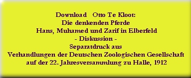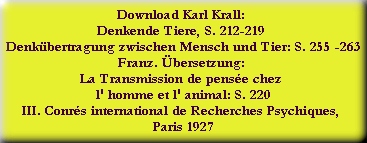 Denkende Tiere Diese Seite dokumentiert eine Reihe von Veröffentlichungen, die sich ab 1906 mit der Thematik der sogenannten "klopfsprechenden Tiere" befaßt. |