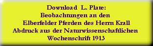 Die Seite versteht sich als eine Dokumentationsstelle, die das zum Teil nur noch sehr schwer zugängliche Material zu diesem Thema wieder veröffentlicht. Im Folgenden werden einige der interessantesten Arbeiten in zeitlicher Reihenfolge ihres Erscheinens vorgestellt. Mit diesen Seiten betreten wir eines der faszinierendsten Gebiete der menschlichen Erkenntnis: Durch eine besondere Unterrichtsmethode, die es Tieren, vor allem Hunden und Pferden erlaubt, sich in uns gebräuchlichen Begriffen verständlich zu machen, wird ein Tor aufgestoßen in ihre innere Welt, wir lernen, uns in die Tiere hineinzuversetzen und dürfen uns und die Welt mit den Augen und dem Bewußtsein der Tiere sehen. Lassen wir uns auf diesen Weg ein, werden wir verwundert feststellen, wie reich die Persönlichkeit eines Tieres sein kann, wie vielfältig ihre Gefühle für uns sein können, und wir bekommen eine Ahnung davon, welche Persönlichkeit in den uns anvertrauten Tieren verborgen sein kann. Die Frage muß erlaubt sein: Was bringt uns all dieses? Wissen wir nicht ohnehin, daß manche Tiere, insbesondere Haustiere, die mit den Menschen längere Zeit zusammenleben, ein ganz inniges Verhältnis zu ihrem "Herrchen" und "Frauchen" entwickeln können? Nun, wer ein Haustier hat, weiß es, oder ahnt es zumindestens, auch ohne alle gelehrten Untersuchungen - hier aber, mit den präsentierten Ergebnissen der Unterrichtsversuche, wird das Ahnen zur Gewißheit und reifen Erkenntnis. Wir lernen darüber hinaus nicht nur, daß Tiere, ebenso wie wir Menschen, wirklich richtig denken können, sondern daß es prinzipiell, in bezug auf ihre geistigen Fähigkeiten, gar keine Grenzlinie zwischen Mensch- und Tierreich gibt. Diese Erkenntnis soll, sie muß für unser Verhältnis zu den Tieren, in der Art und Weise, wie wir mit ihnen umgehen, Folgen haben. Der Mensch ist zum Herr über die Tierwelt gesetzt. Wenn wir erst einmal lernen, daß das Gebot "Du sollst ihr Herr sein" eigentlich hinausläuft auf ein Gebot der Liebe, dann wird auch der Mensch erhoben - aber erst dann, wenn der Erkenntnis auch die T a t folgt! Berichte, daß Tiere (Pferde) zu eigenständigen Äußerungen in unseren Begriffen fähig sind, sind uns schon aus dem Altertum und aus der Barockzeit bekannt. Aber erst in neuerer Zeit, zu Anfang des 20. Jahrhunderts, wurde von dem pensionierten Mathematiklehrer von Osten in Berlin eine Methode entwickelt, Pferden zuerst die einfachen Grundrechenarten beizubringen, und später, mit einem vereinfachten Alphabet, auch per Hufschlag geklopfte Begriffe von den unterrichteten Pferden zu erhalten. Nachdem sich von Osten bereits 14 Jahre mit Unterrichtsversuchen mit seinem Pferd "Hans" beschäftigt hatte, trat er 1904 mit dem Pferd an die Öffentlichkeit und bot per Zeitungsinserat im Deutschen Offiziersblatt an: "Leser dieser Zeitung können den Versuchen zur Feststellung der geistigen Fähigkeiten des Pferdes unentgeltlich beiwohnen. V. Osten, Berlin N., Griebenowstr. 10." In den kommenden Wochen und Monaten fanden sich zahlreiche Persönlichkeiten im Hinterhof der Griebenowstraße ein, um die Vorführungen und Versuche zu beobachten und sich ein eigenes Urteil zu bilden. Über den "Klugen Hans" wurde bald in fast allen Zeitungen des In- und Auslandes berichtet. Die Wellen der Anteilnahme schlugen so hoch, daß bald eine "wissenschaftliche Kommission" in die Griebenowstraße entsandt werden mußte, die zu dem Ergebnis kam, daß die Leistungen des "Klugen Hans" nur auf angeblich unbewußt gegebene Zeichen des Experimentators zurückzuführen seien. Die neue Richtung der Tierpsychologie erhielt durch die Kommission so ein "Begräbnis erster Klasse", die etablierte Forschung hatte, nicht zum ersten Mal in der Geschichte der Menschheit, einen Eckstein verworfen. Karl Krall, der zu dieser Zeit bei von Osten in die Berliner Versuche eintrat, ließ sich aber durch diese Rückschläge in der Anerkennung nicht beirren und legte durch den Ankauf zweier besonders begabter Araberhengste, der Pferde Muhamed und Zarif, und ihren Unterricht die Grundlage für wissenschaftlich gesicherte Ergebnisse in diesem Bereich. Sein 1912 erschienenes Werk "Denkende Tiere" über die von ihm ab 1909 in seiner Heimatstadt Elberfeld unterrichteten Pferde ist in diesem Bereich bis heute grundlegend geblieben. Vor allem auch angeregt durch die Berichte über den "Klugen Hans" machten bald auch andere den Versuch, ihren Hund auf ähnliche Weise zu unterrichten. Allen voran ist hier die Familie des Mannheimer Juristen Dr. F. Moeckel zu nennen mit ihrem Hund "Rolf", der zudem das Kunststück fertigbrachte, sich gewissermaßen "selbst zu entdecken" (siehe Moeckel: Mein Hund Rolf, S. 21f.). Bei Rolf, seiner liebevollen Anhänglichkeit an seine Herrin Paula Moeckel, der innige Umgang mit den vier Kindern der Familie, waren die günstigsten Voraussetzungen geschaffen für eine enge Beziehung zwischen Hund und Familie - Rolf, die Ergebnisse der mit ihm angestellten Beobachtungen und Versuche, sollte in der Folgezeit, neben den Elberfelder Pferden, zu einem Eckpfeiler dieses jungen Zweiges der Tierpsychologie werden. Die ersten Veröffentlichungen auf diesem Feld sind ab 1904 zumeist populäre Zeitungsartikel über den "Klugen Hans", einsetzend mit dessen erster öffentlicher Vorführung. Ab 1912 erscheinen dann erste detailliertere Veröffentlichungen in Zeitungen und Fachzeitschriften, von Beobachtern, die dem Unterricht der Elberfelder Pferden beiwohnen konnten oder die in Mannheim die Äußerungen des klopfsprechenden Hund Rolf bei Familie Moeckel erleben durften. Karl Krall legt, nach vier Jahren Arbeit mit Muhamed und Zarif, die Monographie "Denkende Tiere" vor, die ein lebhaftes Echo in der Presse des In- und Auslandes erhält (Pressespiegel in Kralls Zeitschrift "Tierseele", S. 161-168, S. 307-310, S. 408-415). In diese Zeit fällt auch die Gründung der dann von Prof. Ziegler/Stuttgart geleiteten "Gesellschaft für Tierpsychologie", die ab 1913 in Ihren Mitt